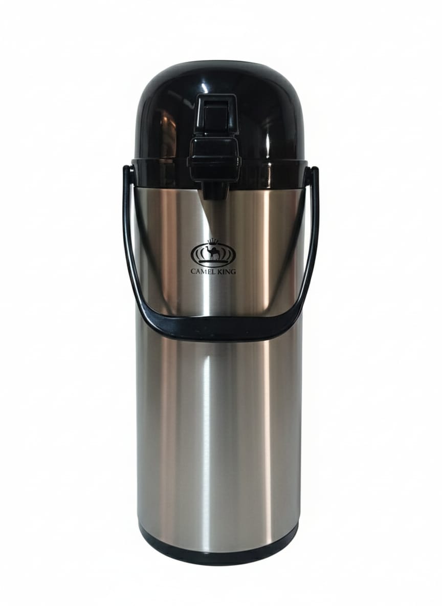 Flask Air Pot 1.9 Ltrs keeps beverages at your desired temperature for hours. The double-wall insulated design maintains heat or cold without electricity, making it ideal for tea, coffee, or water throughout the day. Its 1.9-liter capacity serves multiple people, while the sleek stainless steel finish complements any kitchen or dining space. Lightweight and durable, this air pot is perfect for homes, offices, or gatherings where convenience and temperature retention matter.